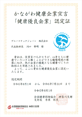 ブルーマチックジャパンは2018年度の認定に続き、2023年度も認定されました。 横浜市によるプロジェクトで、女性の活躍やワーク・ライフ・バランスの推進など、性別を問わず誰もが働きやすい職場環境の実現に向けて、積極的に取り組んでいる事業所を認定する「よこはまグッドバランス賞」認定企業として、労働関係法令の遵守はもちろん、経営者のコミットメント、長時間労働の是正、仕事と育児・介護の両立など、さらなる職場改善を進め、より魅力的な企業になることを目指していきます。
