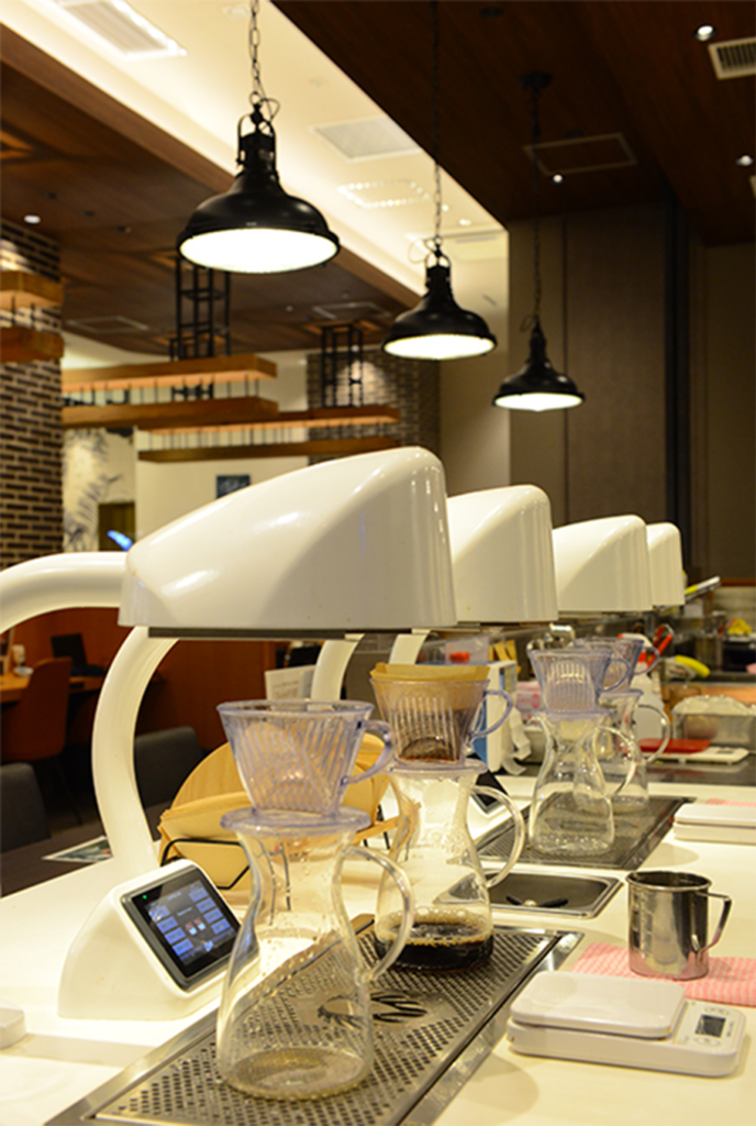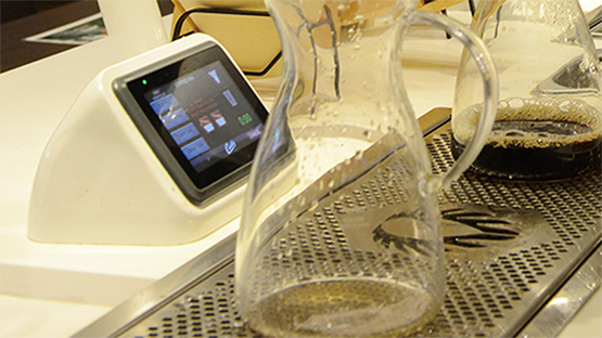 最先端の技術を駆使し、バリスタのハンドドリップを再現。新しいコーヒータイムを演出する次世代のコーヒーマシン。コーヒーマシン内ウォーターヒーティングユニットはカウンター下に配置し、お客さまの近くで抽出しながらの対話が可能に。