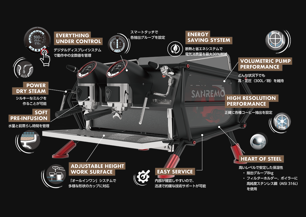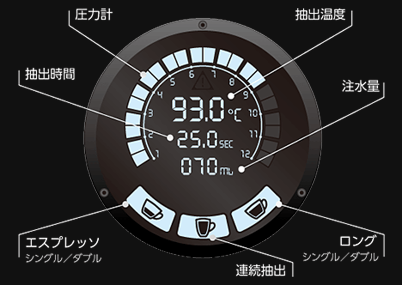 バイクにインスパイアされたハードなボディに世界最高峰の抽出技術を搭載。バリスタの思うままに操れるよう直感的でシンプルな操作性を追求し、パワフルで高性能な品質と使いやすさを両立。