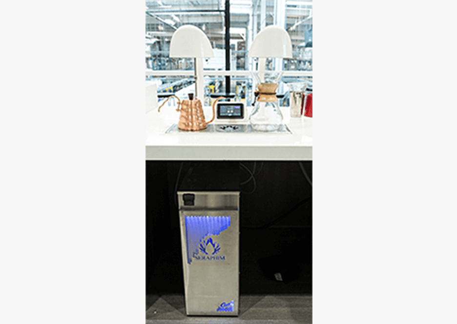 コーヒーマシン内ウォーターヒーティングユニットはカウンター下に配置し、お客さまとできる限り近い位置で対話しながらコーヒーの魅力をお届けできます。